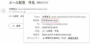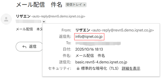 メール配信で設定した返信先のメールアドレスです。