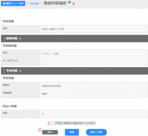 3.予約登録画面に移動します。登録後、一番下にある「確認」をクリックします。