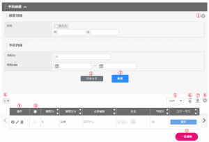 詳細:予約データの詳細を閲覧できます。ここから予約データの編集/キャンセル/削除もできます。