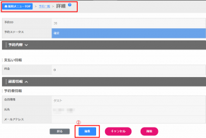 編集(②)をクリックして、予約者情報を変更します。