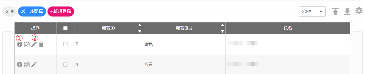 運用メニュー「顧客一覧」からできます。